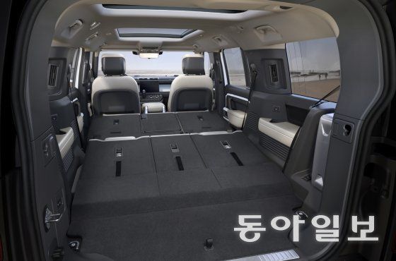 실내 공간의 만족도도 높다. 일반적인 7인승 SUV의 경우 3열 시트에 성인 2명이 앉기도 힘든 반면, 디펜더 130의 3열 시트는 1200㎜의 폭과 804㎜의 레그룸을 갖추고 있어 성인 3명이 앉아도 여유롭다.