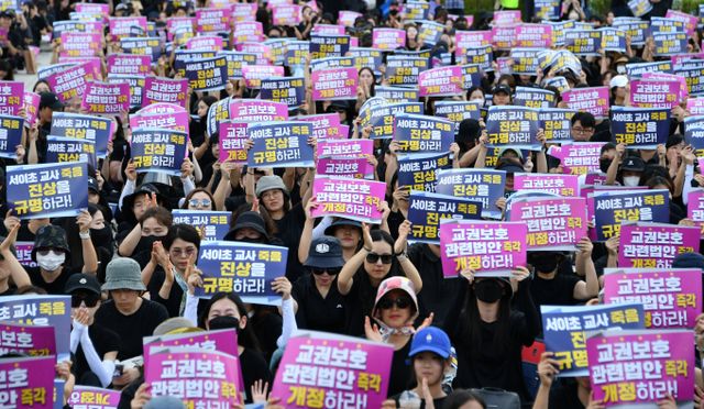 최근 서울 서초구와 양천구, 경기 용인시, 전북 군산시 등 각지에서 교사들의 극단적 선택이 이어지고 있다. 이에 따라 교사들은 무너진 교권을 회복해야 한다는 목소리를 높이고 있다. 지난 2일에는 약 20만명의 교사들이 여의도 국회 앞에 모여 교권 회복 집회를 열었다.