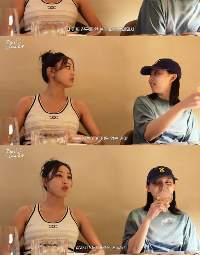 다함께 식사를 하면서 이야기를 나누던 중 나연은 "나는 요즘 친구를 더 만들어야겠다는 생각을 너무 많이 했다"고 입을 열었다.