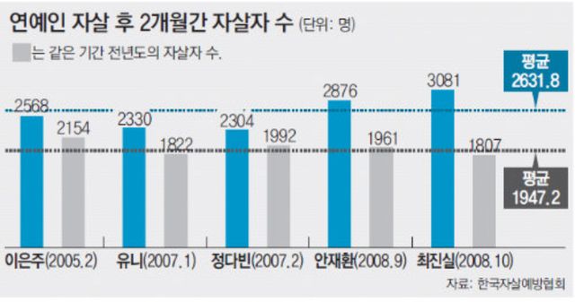 - 평소 우울증 같은 증세가 없었더라도 언론 보도에 자극을 받아 극단적인 선택을 할 수 있다.