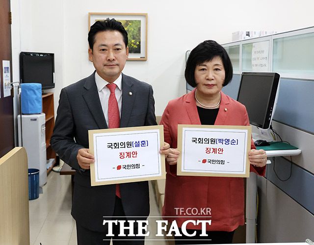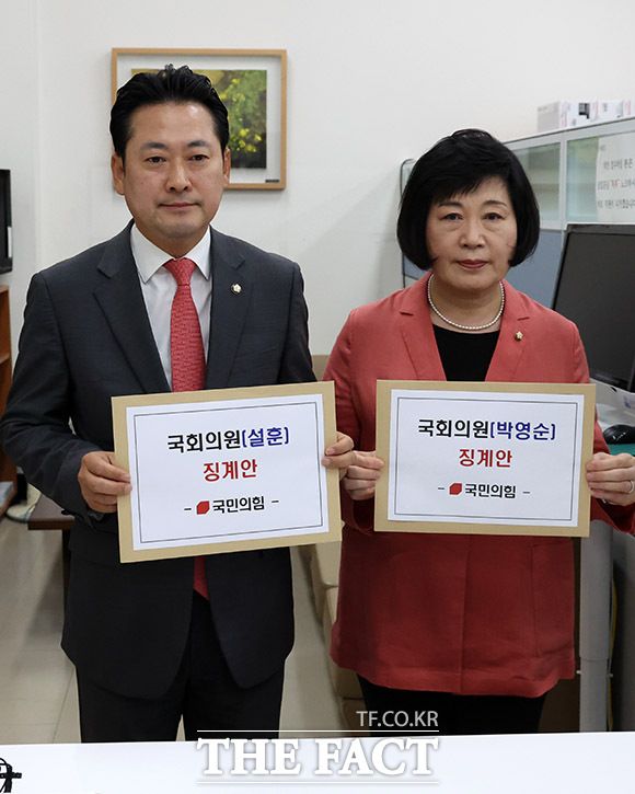 이날 의안과를 찾아 설 의원과 박 의원에 대한 징계안을 제출한 국민의힘은 "설 의원은 본회의장에서 대통령을 향해 탄핵해야 한다는 말을 해 대통령의 명예를 심각하게 훼손했을 뿐 아니라 국회의원의 품위 유지 의무도 위반했다"고 말했다.