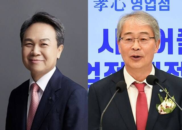진옥동(왼쪽) 신한금융지주 회장은 지난 6월 자사주 5000주를 매입했으며, 임종룡 우리금융지주 회장은 지난 6일 1만 주 규모의 자사주를 장내 매수했다. /신한금융·더팩트 DB