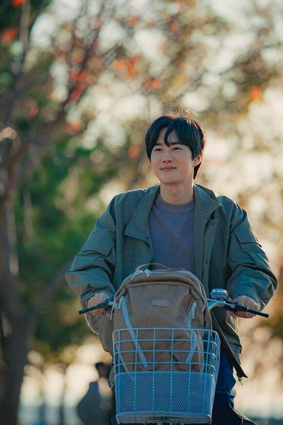 8일 소속사 SM엔터테인먼트가 공개한 '힙하게' 스틸 속 수호는 봉예분(한지민 분)과 청춘 로맨스의 한 장면을 담은 듯 아름다운 풍경을 배경으로 자전거 데이트를 즐기는 모습과 함께 따뜻한 눈웃음을 보여줘 포근한 분위기로 보는 이들을 흐뭇하게 만든다.