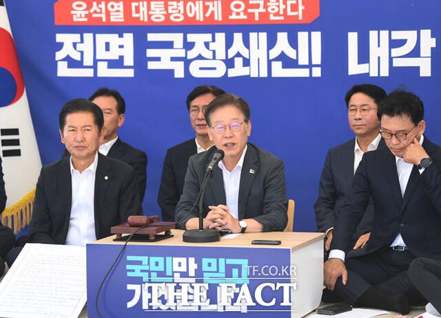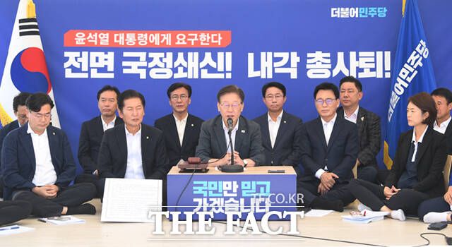 이 대표는 이날 회의에서 "대통령은 민주주의 파괴, 민생 파괴, 한반도 평화 파괴 행위에 대해 국민에게 사죄하고 지금까지 해온 국정방향을 전면 전환해야 한다"며 "국무총리를 포함한 내각이 총사퇴하고 이 사태에 책임지면서 새로운 방향을 모색해야 한다"고 강조했다.