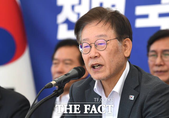 이재명 더불어민주당 대표가 8일 오전 서울 여의도 국회 본청 앞 단식투쟁 천막에서 열린 최고위원회의에 참석해 모두 발언하고 있다. /국회=이새롬 기자