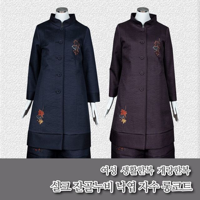 7. 부국사임당 여성 생활한복 실크 잔골누비 낙엽자수 롱코트 개량한복