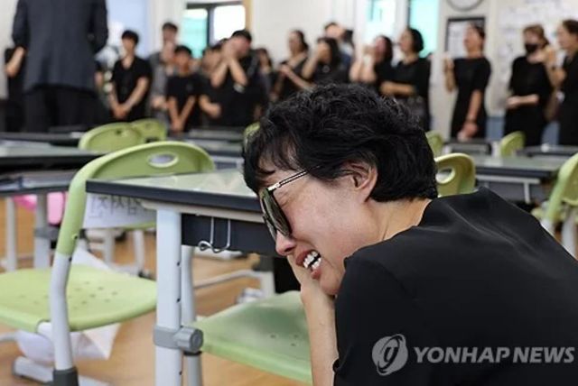 A씨가 가르쳤던 교실에서 오열하는 유족