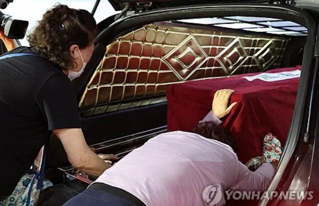 운구차에 관이 실리자 A씨 어머니는 관을 부여잡고 "죽어도 못 보낸다"며 오열했다. 시어머니도 관에서 손을 떼지 못했다.