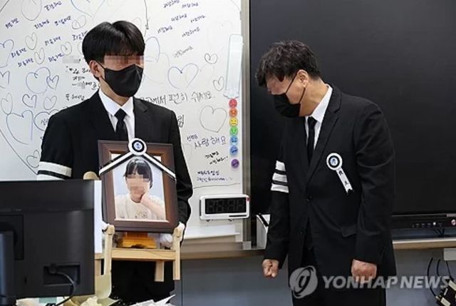 교실에 도착한 A씨의 영정 사진 / 이하 연합뉴스