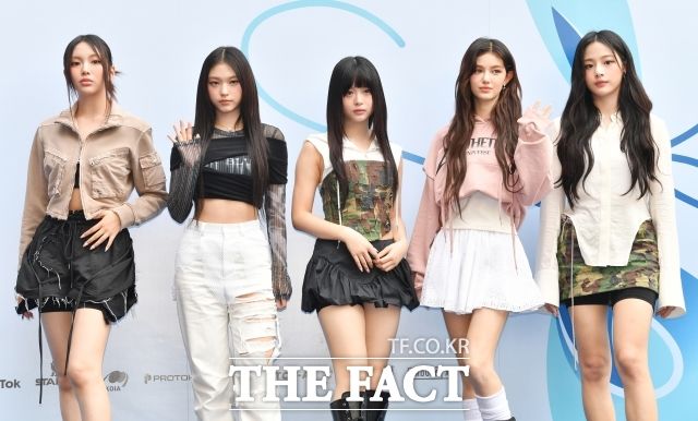 뉴진스가 9월 걸그룹 브랜드평판 1위를 차지했다. 뉴진스 혜인, 해린, 하니, 다니엘, 민지(왼쪽부터)가 지난 5일 열린 '서울패션위크 오프닝쇼 얼킨 포토월'에 참석해 포즈를 취하고 있다. /박헌우 기자