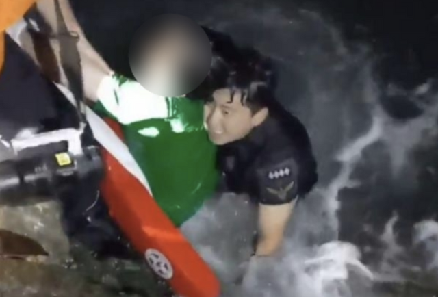 해당 구조 대원은 현장에 차를 댄 후 갯바위까지 100여m를 뛰어 내려간 뒤 맨몸으로 바다에 뛰어들었다.