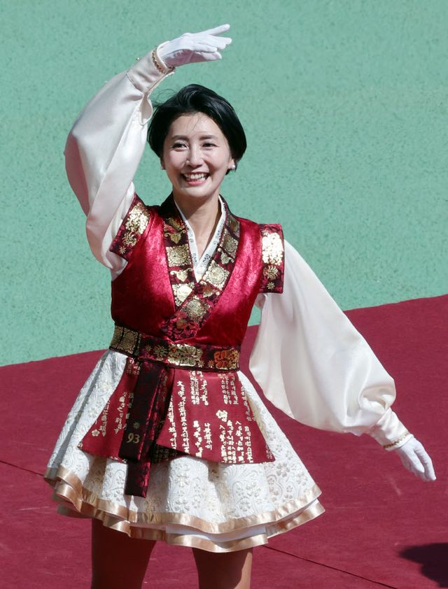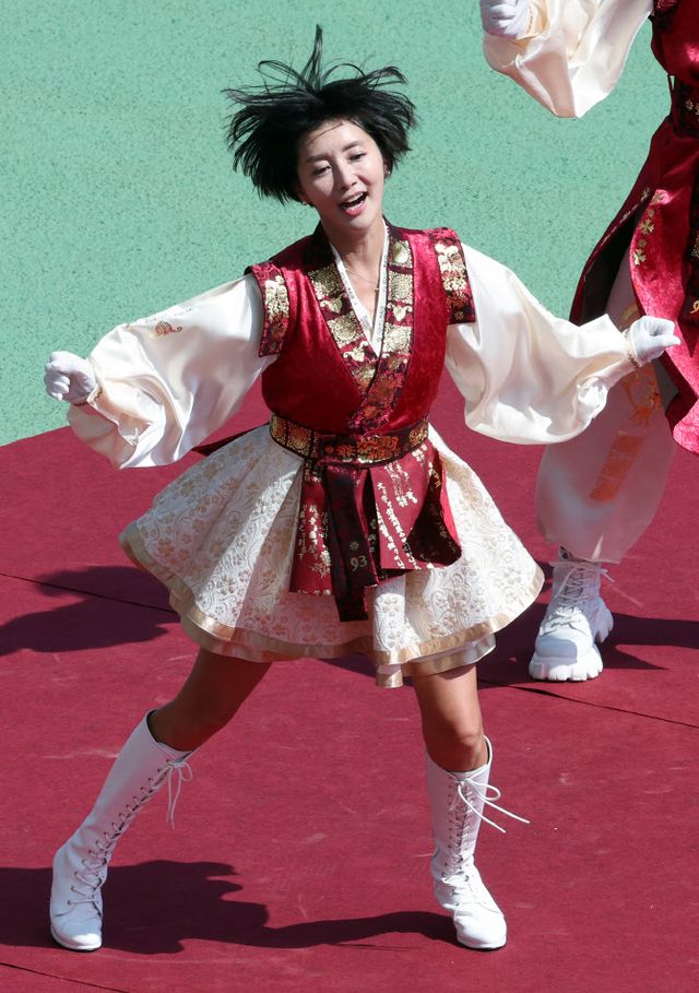 고대 정치외교학과 출신인 한성주는 이날 짧은 머리에 한복 스타일의 치어리딩 옷을 입고 등장해 환한 미소와 활기찬 동작을 보이는 등 열정적인 모습을 보였다.