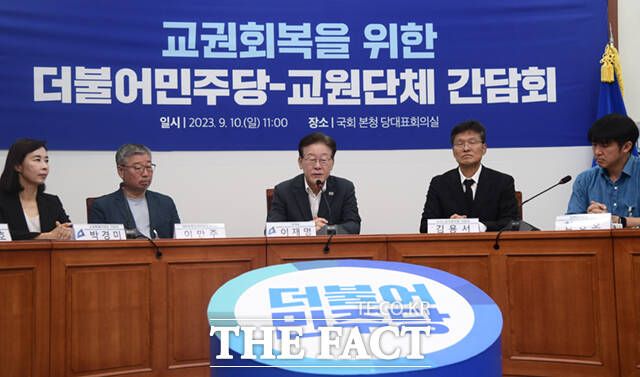 그는 "이럴수록 제도적인 정비가 필요할 터인데 여러분들이 지적하시는 것처럼 과도한 규제라든지 간섭, 이런 것들을 조금 완화하고 우리 선생님들이 교사의 본지에 따라서 제대로 된 교육 활동을 할 수 있도록 더불어민주당도 최선을 다하겠다"고 밝혔다.