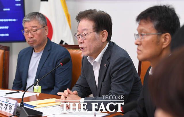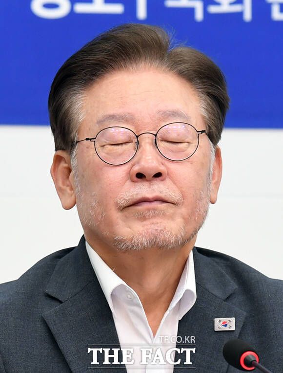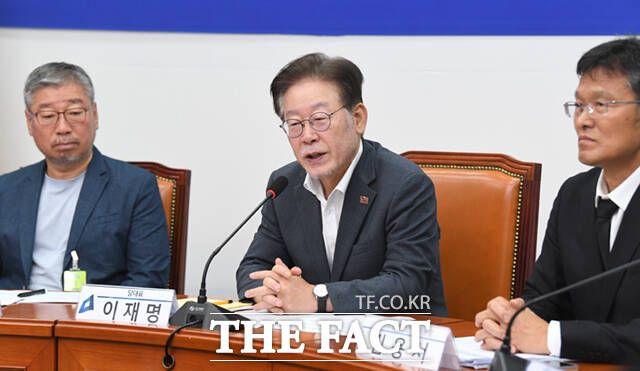 단식 11일째인 이재명 더불어민주당 대표가 10일 오전 서울 여의도 국회 당대표회의실에서 열린 교원회복을 위한 교원단체 간담회에 참석해 모두 발언하고 있다.