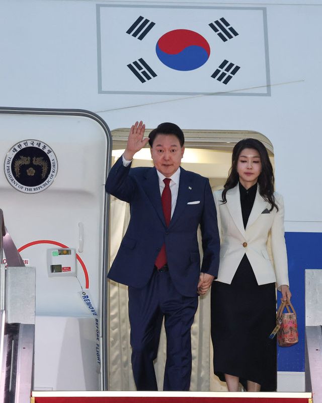 공항에는 김기현 국민의힘 대표와 윤재옥 원내대표, 김대기 대통령 비서실장, 이진복 정무수석, 장호진 외교부 1차관, 고기동 행정안전부 차관이 윤 대통령 부부를 맞이했다.
