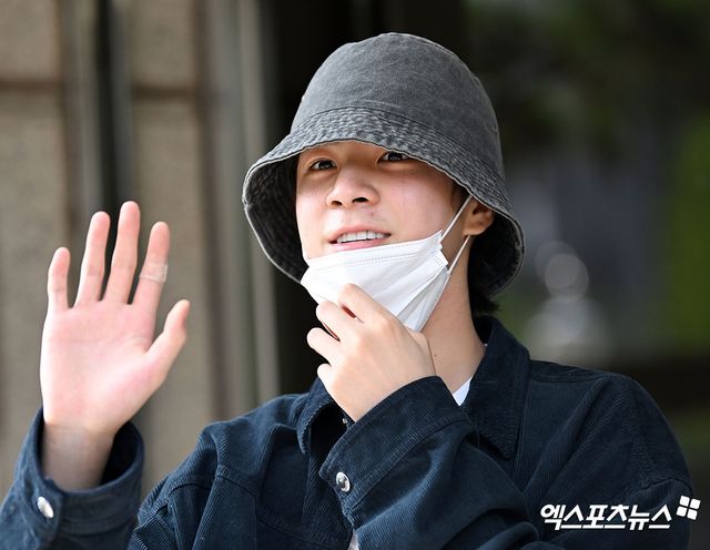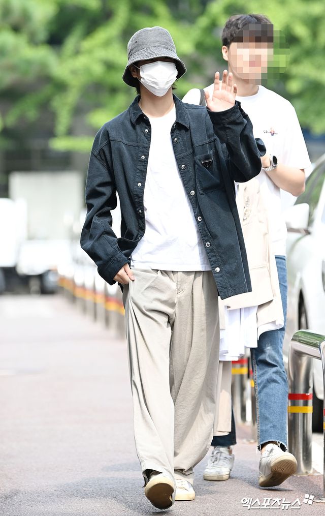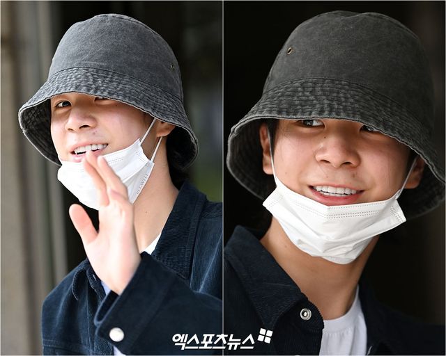 이날 '불후의 명곡' 녹화에 참여하는 가수 정동원은 노메이크업이라 버킷햇에 마스크를 착용한 채 기다려준 취재진과 팬들에게 인사를 하며 방송국에 들어섰다. 녹화장으로 들어가기 전 팬들이 마스크를 벗어달라는 요청에 수줍지만 마스크를 살짝 내리며 미소와 함께 인사하는 팬서비스를 보여줬다.