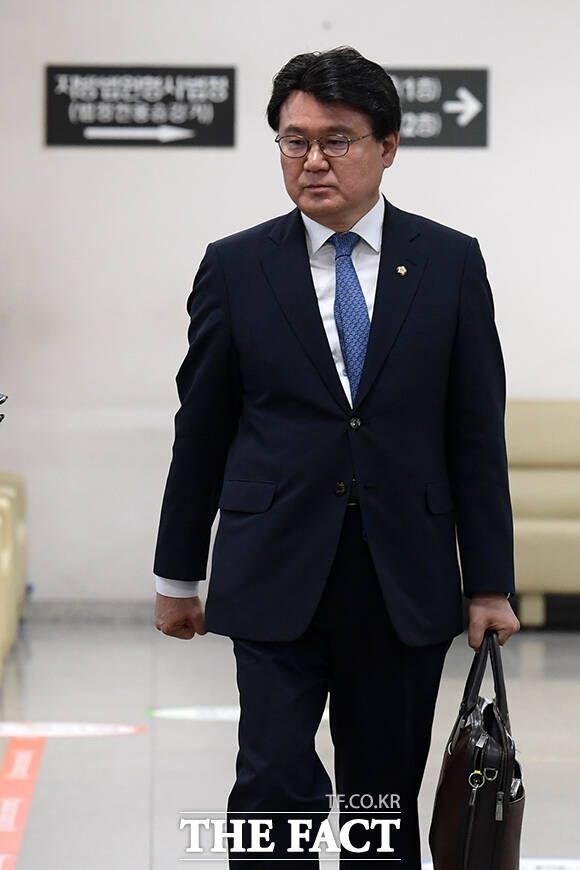 [더팩트ㅣ서예원 인턴기자] 청와대 하명수사 및 선거개입 의혹 등을 받는 황운하 더불어민주당 의원이 11일 오전 서울 서초구 서울중앙지방법원에서 열린 공직선거법위반 공판에 출석하고 있다.