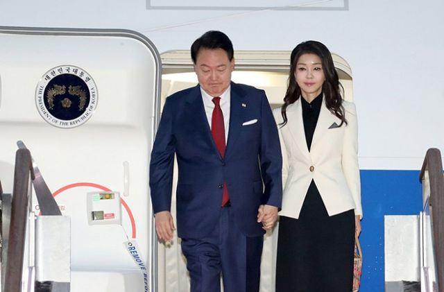 윤 대통령은 이날 경기 성남시 서울공항에 도착해 오전 5시59분에 공군 1호기에서 내려 서울공항에 환영 나온 김기현 국민의힘 대표, 윤재옥 원내대표, 김대기 비서실장, 이진복 정무수석 등과 악수를 했다.