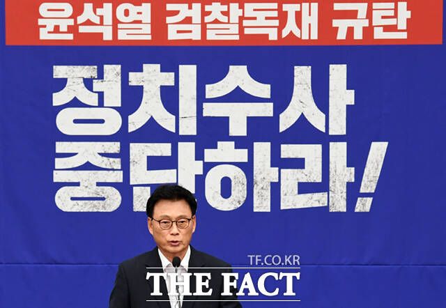 이어 "그러나 야당 대표에 대한 검찰의 수사가 1년 반을 끌고 있다"며 "정치적 배경이 있다고 의심하는 국민들이 차츰 늘고 있고, 그 결과 여부에 관계없이 검찰의 형태에 대해 문제가 있다 분노하는 의원들이 많이 있다"고 지적했다.