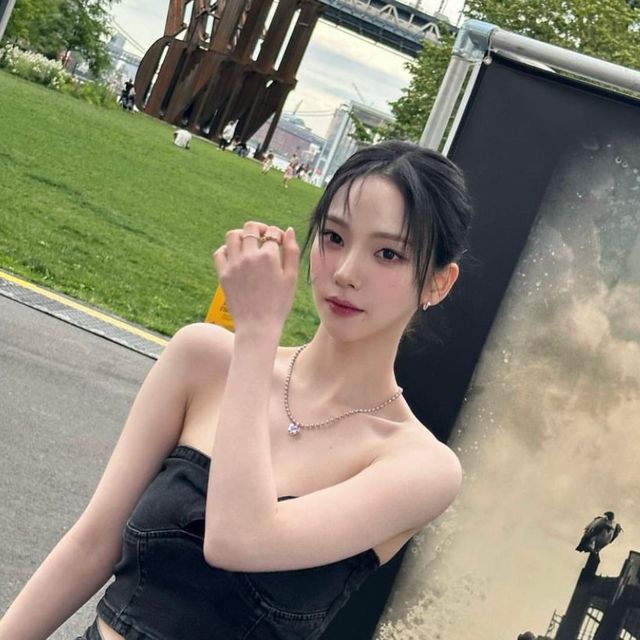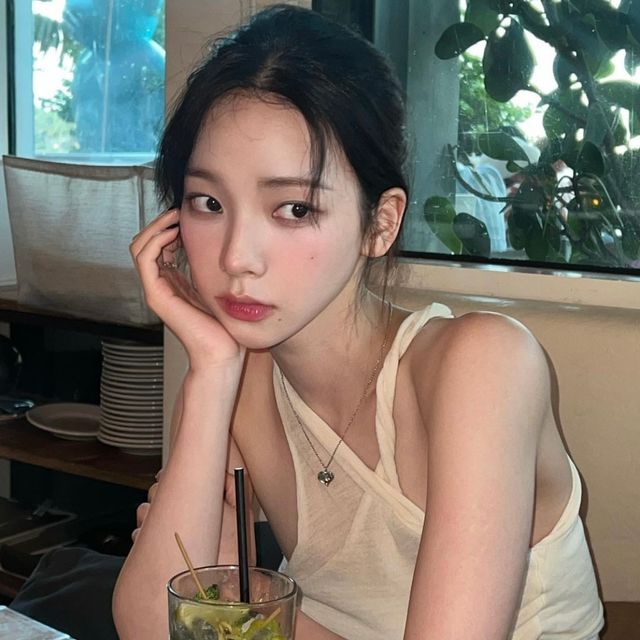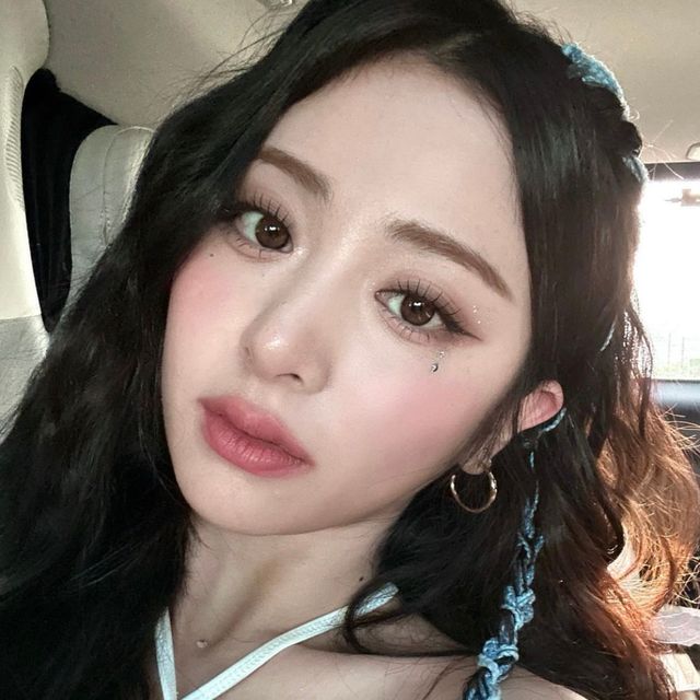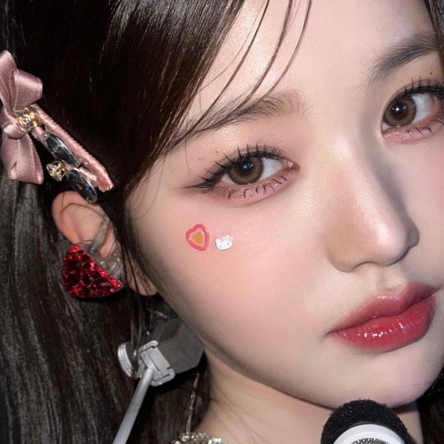윈터 역시 색조 메이크업이 잘 받는 아이돌! 웜끼 없는 쿨 브라운 섀도우로 눈가에 음영을 주었어요. 애교살 부분에 짙은 음영을 주는게 윈터 메이크업의 특징. 애교살 중앙부분도 너무 밝지 않은 미들톤의 섀도우로 음영을 주고, 펄을 올려 반짝이는 느낌을 주었어요. 립은 요즘 대세인 탕후루 글로우 립!