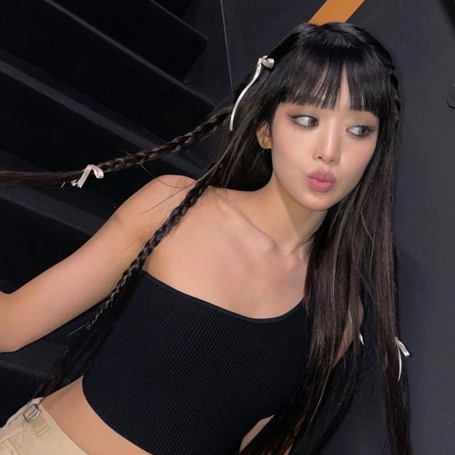 민니의 신비로운 세미 스모키 메이크업! 이 메이크업의 특징은 블랙 펜슬라이너로 언더아이를 촘촘히 채우는 거에요. 언더아이를 채워주면 신비로우면서 시크한 느낌의 메이크업을 연출할 수 있어요. 눈두덩이에는 실버 컬러의 섀도우로 Y2K 느낌을 내주었어요.