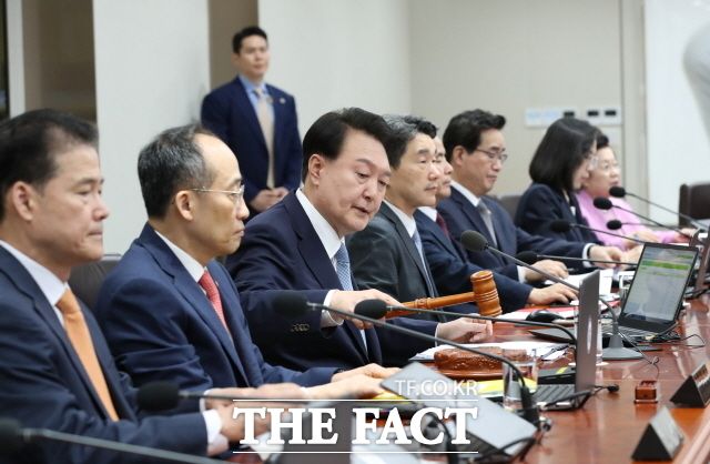 윤석열 대통령은 12일 5박 7일간의 순방 결과를 설명하고 후속조치를 당부했다. 아울러 교권 보호법의 조속한 국회 통과도 요청했다. 서울 용산 대통령실 청사에서 열린 국무회의를 주재하고 있는 윤 대통령. /뉴시스