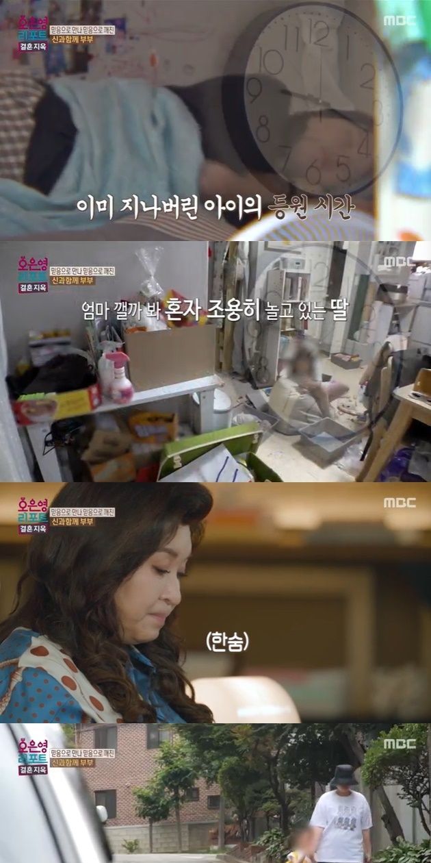 남편은 일하러 가고, 아내는 6살 딸의 아침 식사도 챙기지 않은 채 잠만 잤다. 시간은 계속 흘러 이미 아이의 등원 시간이 지나 안타까움을 자아냈다. 특히 엄마가 깰까 봐 조용히 혼자 놀고 있는 아이의 모습이 안타까움을 더했다.