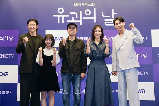 12일 서울시 마포구 상암동 스탠포드호텔에서 ENA 새 수목드라마 ‘유괴의 날’ 제작발표회가 진행됐다. 자리에는 윤계상, 박성훈, 유나, 김신록, 박유영 감독이 참석했다.