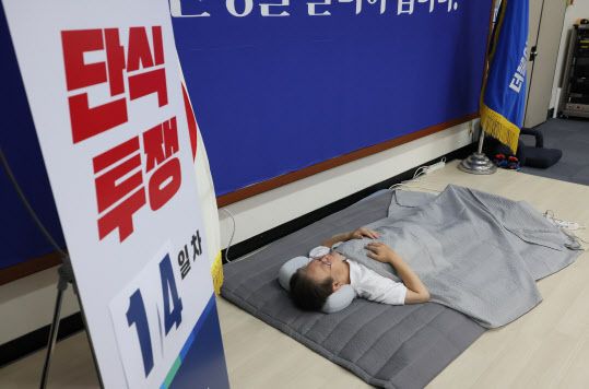 한편 이 대표는 단식 14일째인 이날 건강 악화와 체력 소모 최소화를 위해, 기존 국회 본관 앞 야외 농성 천막에서 당대표실에 실내 농성장으로 변경해 단식을 이어가고 있다. 이날 오전부터 민주당 최고위원을 포함한 여러 의원 모임 등에서 순차적으로 당대표실 농성장을 방문해 이 대표의 단식 중단을 권유하고 있다.