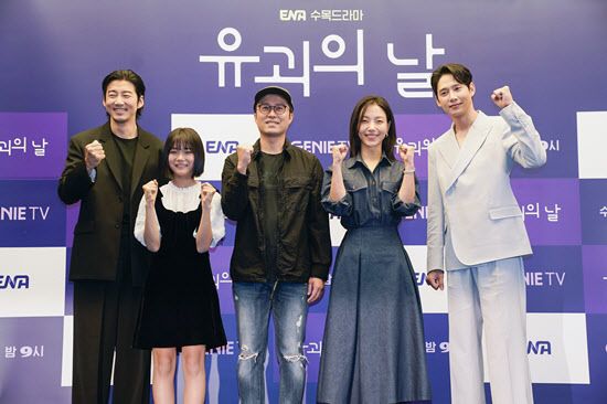 12일 서울시 마포구 상암 스탠포드호텔에서 ENA 새 수목드라마 ‘유괴의 날’ 제작발표회가 진행됐다. 자리에는 윤계상, 박성훈, 유나, 김신록, 박유영 감독이 참석했다.