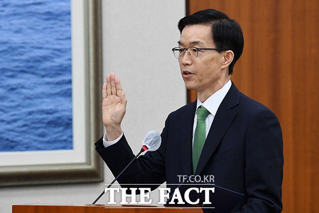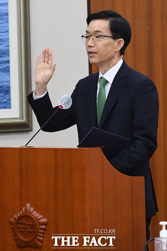 [더팩트ㅣ국회=남용희 기자] 방문규 산업통상자원부 장관 후보자가 13일 오전 서울 여의도 국회 산업통상자원중소벤처기업위원회에서 열린 인사청문회에서 선서를 하고 있다.