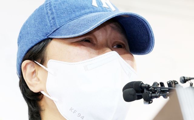 13일 군인권센터에서 열린 기자회견에서 해병대 실종자 수색 사고 생존 병사의 모친이 심경을 밝히고 있다. / 뉴스1