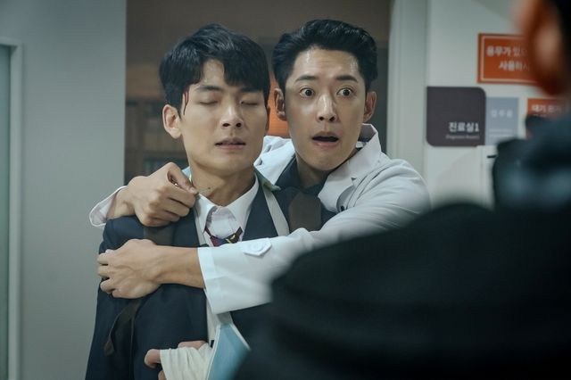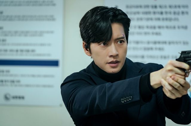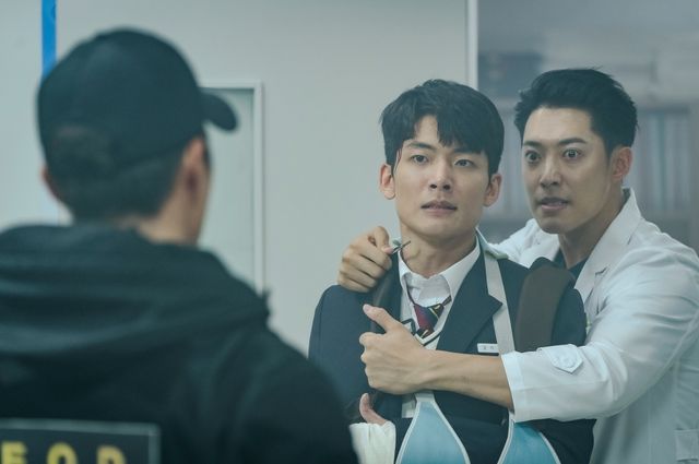 누군가에게 총을 겨눈 김무찬, 불안감에 휩싸인 오정호와 김지훈의 모습이 긴장감을 유발한다. 동시에 김지훈이 어쩌다 오정호의 인질이 된 것인지 궁금증을 자아낸다.