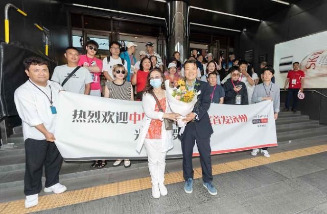 上月31日,济州岛迎来久违的中国团队游客。【图片提供 韩联社】
