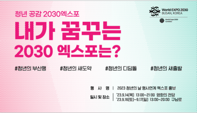 부산시는 청년의 날을 맞아 '2030 부산세계박람회'(엑스포) 유치 홍보에 나선다.