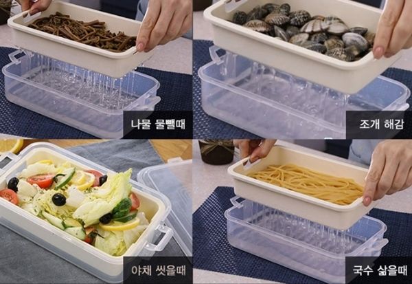 여러 용기를 꺼낼 필요가 없이 하나로 끝낼 수 있다. 뚜껑에 밀가루를 묻히고 용기에 계란 풀어 입혀 전을 부친 뒤 소쿠리에 넣으면 끝이다. 전소쿠리는 기름기 빼기는 물론, 채반으로도 쓸 수 있다. 이중 채반으로 물기를 걸러줘 샐러드, 야채 물기 뺄 때, 조개 해감할 때, 국수 삶을 때 등 다양하게 활용 가능하다.(바로가기)