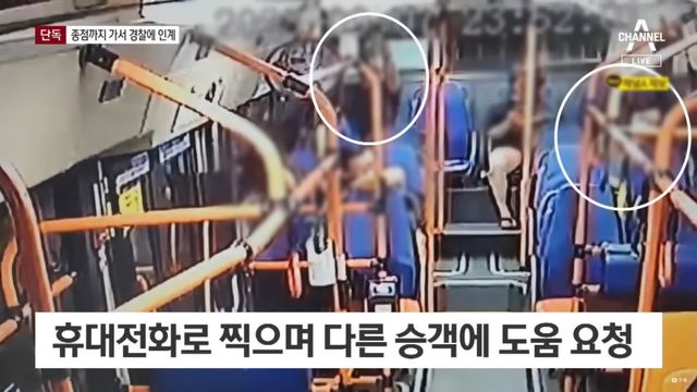 이런 장면은 버스 맨 뒷좌석에 앉은 다른 승객에게 포착됐다. 이 승객은 휴대전화로 사진을 찍어 증거를 남겼고, 다른 승객에게도 조심스럽게 알렸다. 범행 사실을 인지한 승객은 버스 기사에게 다가가 상황을 전달했다.