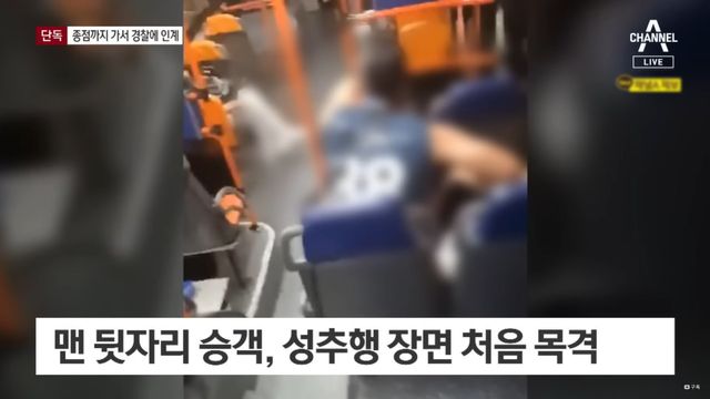 버스 맨 뒷좌석에 앉은 다른 승객이 성추행 장면을 목격해 휴대전화로 촬영했다.