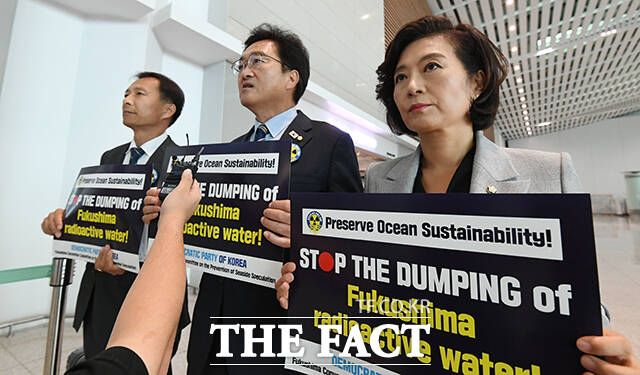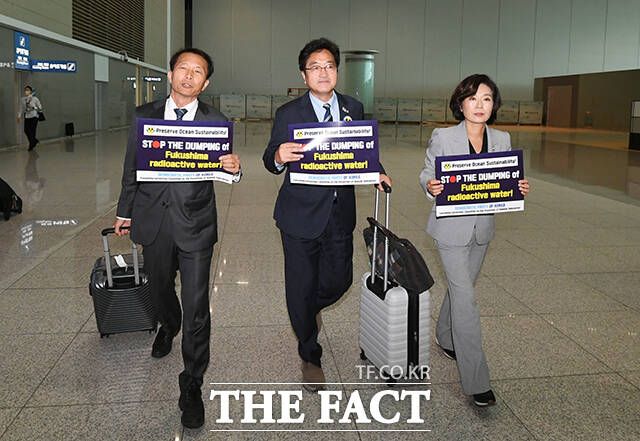 이들은 "후쿠시마 오염수 방류에 대해 우리 국민 80%가 걱정하고 있다"며 "우리 국민들의 걱정을 국제사회에 분명한 목소리로 전달하고 오겠다"는 입장을 밝혔다.