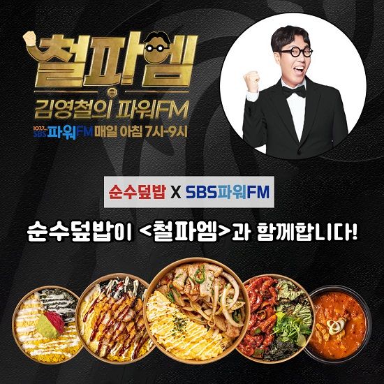 (주)DHM의 덮밥 프랜차이즈 브랜드 '순수덮밥'에서 9월 1일부터 6개월간 매일 아침 7시부터 9시까지 진행되는 김영철의 파워 FM에서 라디오 광고가 진행된다. 라디오 청취 중 경품추천을 통해 순수덮밥 외식상품권을 증정하고 있다.