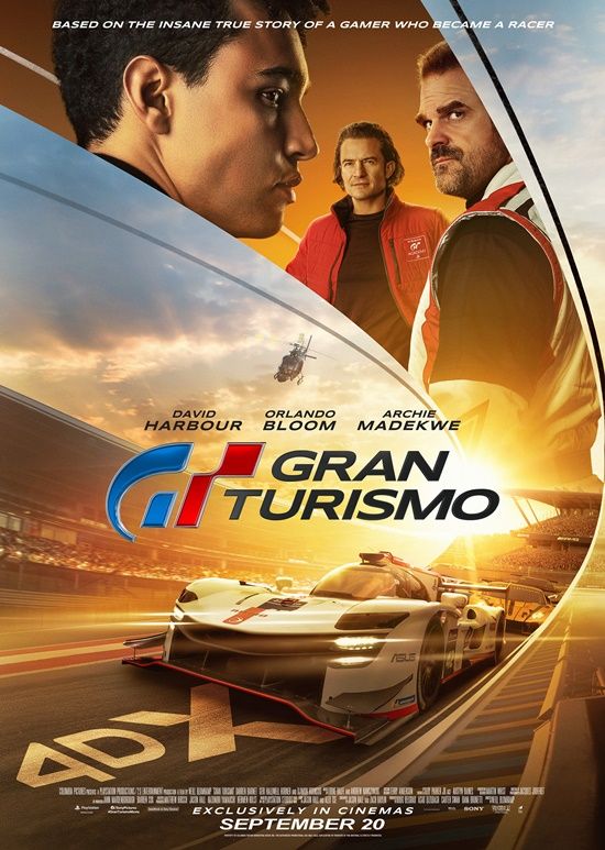 '그란 투리스모'는 게임 '그란 투리스모'에 진심인 게이머 소년이 자신만의 게임 스킬을 실제 자동차 경주에서 활용하며 프로 레이서로 거듭나는 실화를 그린 스피드 액션 블록버스터 영화다.