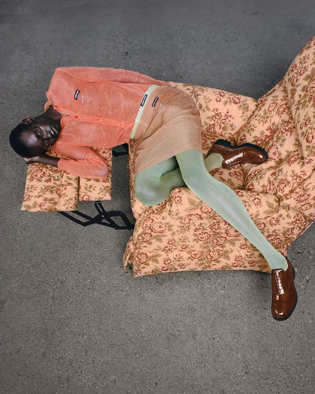 컬렉션을 소개하는 이미지에서도 이 두 가지 포인트가 돋보인다. 미우미우의 아카이브 패브릭으로 장식한, 세월의 아름다움이 느껴지는 소파 위에 다양한 포즈로 앉은 모델들은 기존 ‘클래식함’에서 오는 정제된 무드는 벗고 편안함과 나른함을 입었다.