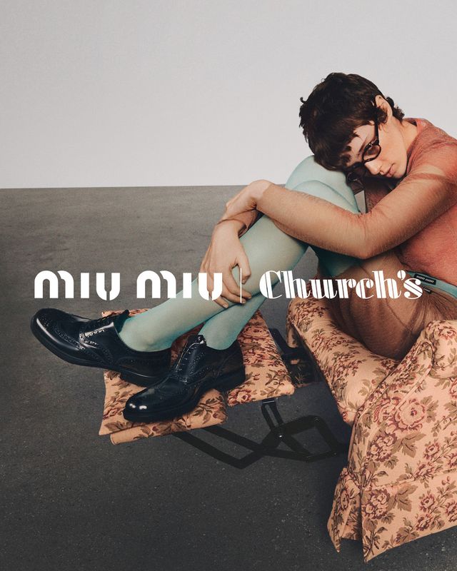 미우미우가 2023년 FW시즌 영국의 클래식 슈즈 브랜드 처치스와 협업했다. 처치스는 150년 이상의 역사를 자랑하는 슈즈 브랜드로 포멀하고 클래식한 무드의 구두를 주로 제작한다.