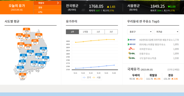 한편, 수입 원유 가격의 기준이 되는 두바이유 가격은 전날 기준 배럴당 93.56원으로 6월말보다 23.8%나 올랐다.