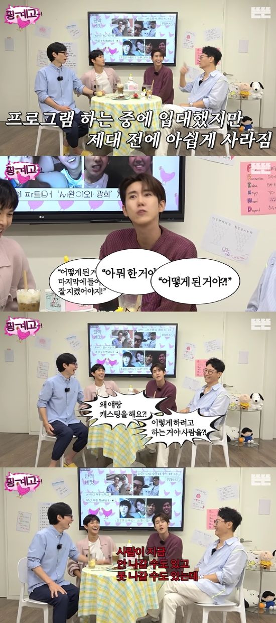 유재석은 "광희한테 미안하다. 광희한테 몇 번 얘기했다. 광희가 군대에서 제대하기 전에 프로그램이 없어졌다"라며 "광희가 나한텐 전화 못 하고 조세호한테 전화해서 '형 어떻게 된 거야' 그랬다더라"라며 안타까움을 자아냈다.