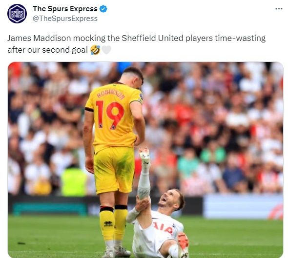 셰필드의 '침대축구'에 화가 났던 건 토트넘 팬들뿐만이 아니었다. '스퍼스 익스프레스'에 따르면, 토트넘이 쿨루세브스키의 역전골이 터지면서 경기를 뒤집자 매디슨은 셰필드 선수 앞에서 누워 웃은 채 다리를 붙잡으면서 셰필드가 경기 내내 했던 시간 끌기를 조롱했다.