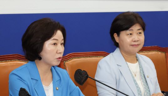 더불어민주당 송옥주 여성정치참여확대위원회 위원장(왼쪽)이 12일 오전 서울 여의도 국회에서 열린 여성정치참여확대위원회에서 발언하고 있다. (사진=연합뉴스)