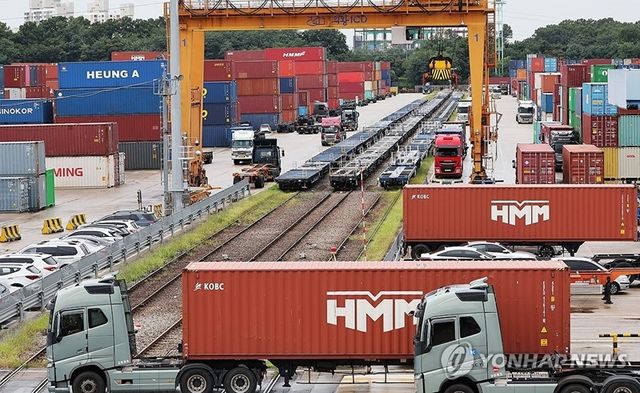 전국철도노동조합 총파업 이틀째인 15일 경기도 의왕내륙컨테이너기지(ICD)에 화물열차가 정차해 있다. / 연합뉴스