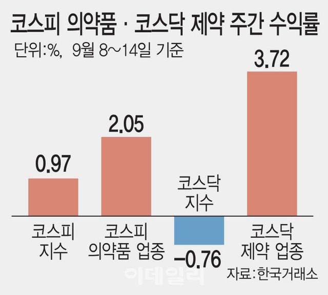 주간 코스피 의약품 업종(+2.05%)과 코스닥 제약 업종(+3.72%)도 같은 기간 코스피(+0.97%)의 상승률와 코스닥의 성적(-0.76%)을 상회했다. 지난 9일부터 싱가포르에서 열린 세계폐암학회가 투자심리를 끌어올렸다는 해석이 나온다.
