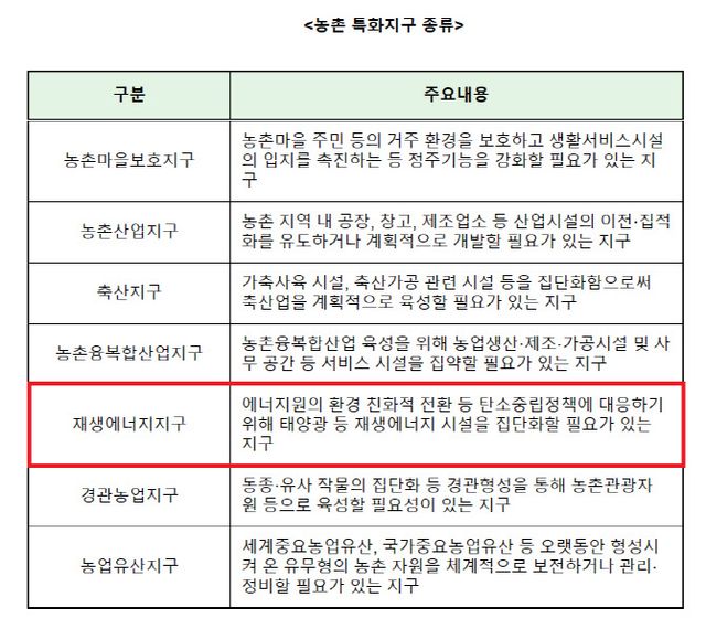 그러나 이양수 국민의힘 의원이 발의한 ‘농촌공간 재구조화 및 재생지원에 관한 법률’이 지난 3월 국회에서 통과되면서 이 법에 근거해 특정 지구에서 내년부터 운영이 가능해진다. 정 교수는 “농림축산식품부에서 이 법에 따라 ‘재생에너지지구’에 기존 77곳을 포함해 지구를 지정하고, 영농형 태양광을 운영가능하도록 하는 방향을 추진할 계획”이라고 말했다.